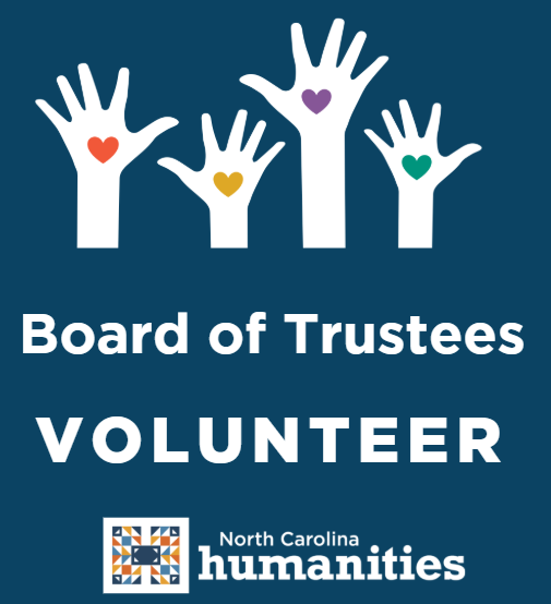 Nominees to join the Board must be residents of North Carolina and supportive of NC Humanities’ mission and values. NC Humanities’ Board is composed of volunteers who are committed to enhancing the cultural life of North Carolinians and whose background, expertise, and leadership provide NC Humanities with the tools to be successful. Trustees serve a renewable, three-year term.